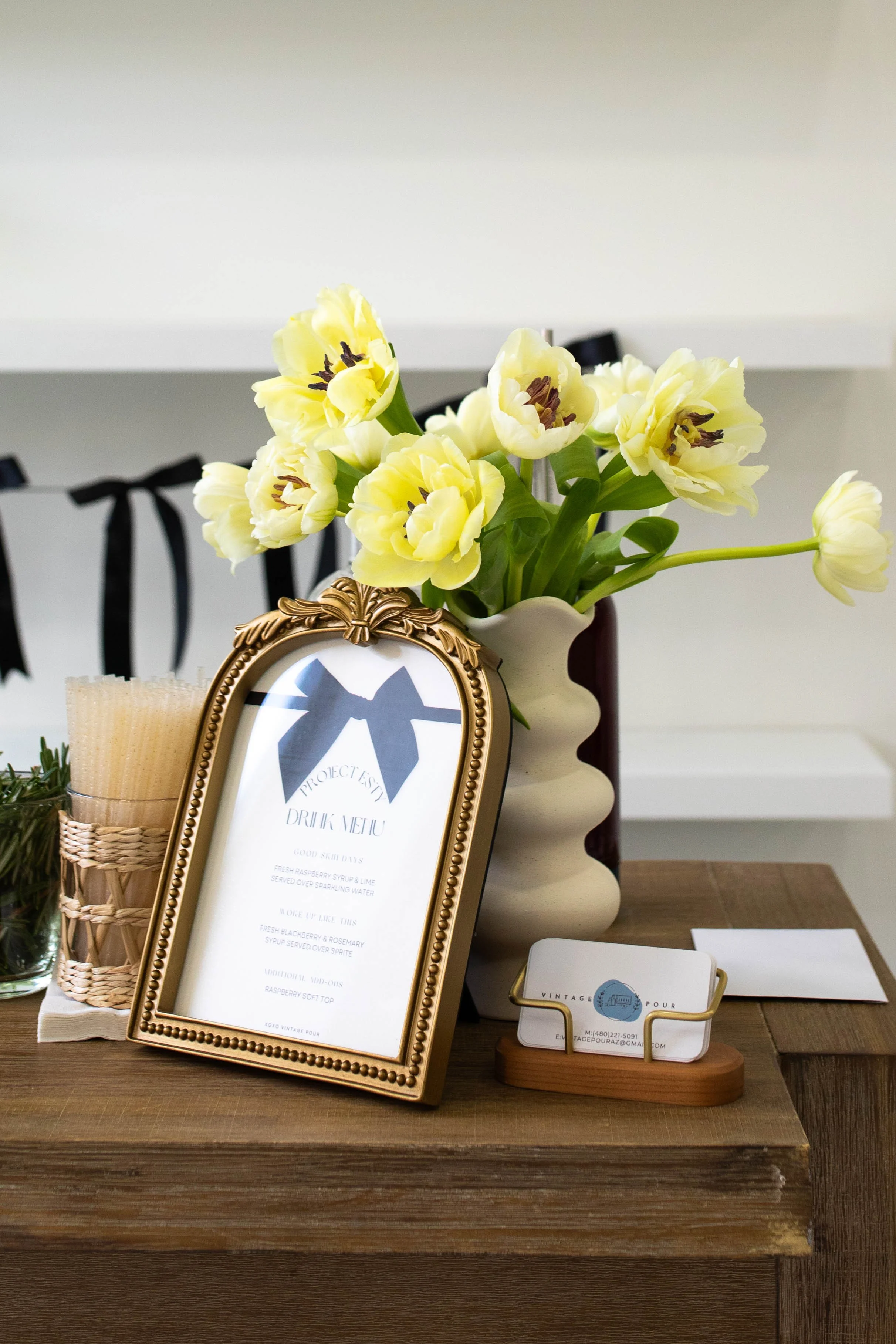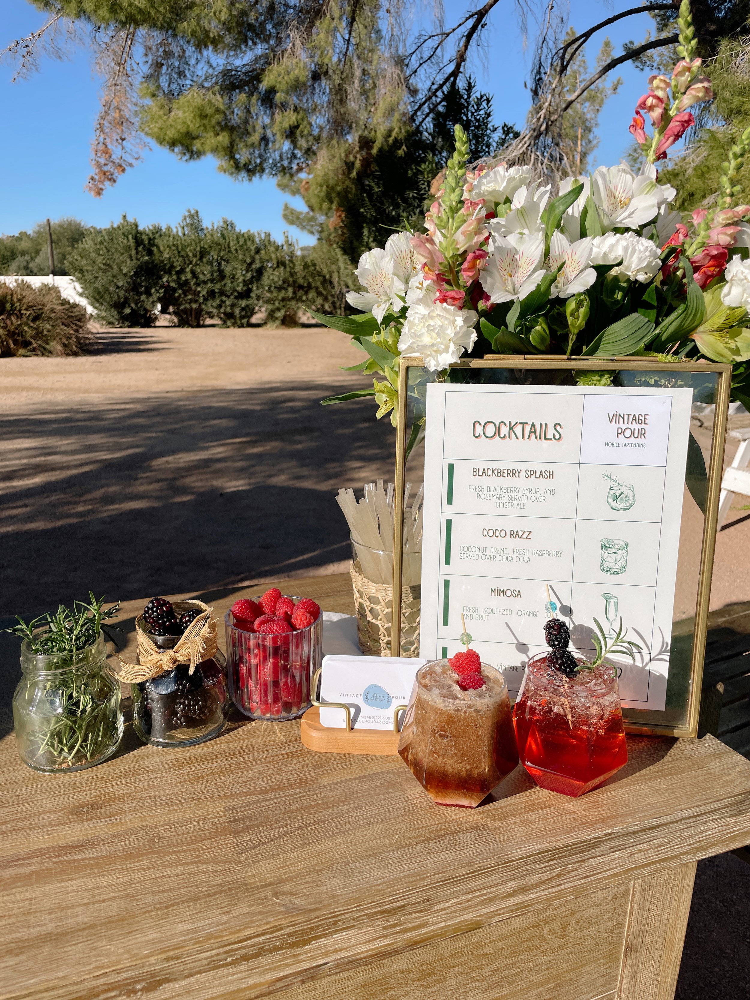Essentials: Ice, napkins, disposable cups, agave straws, framed paper menu