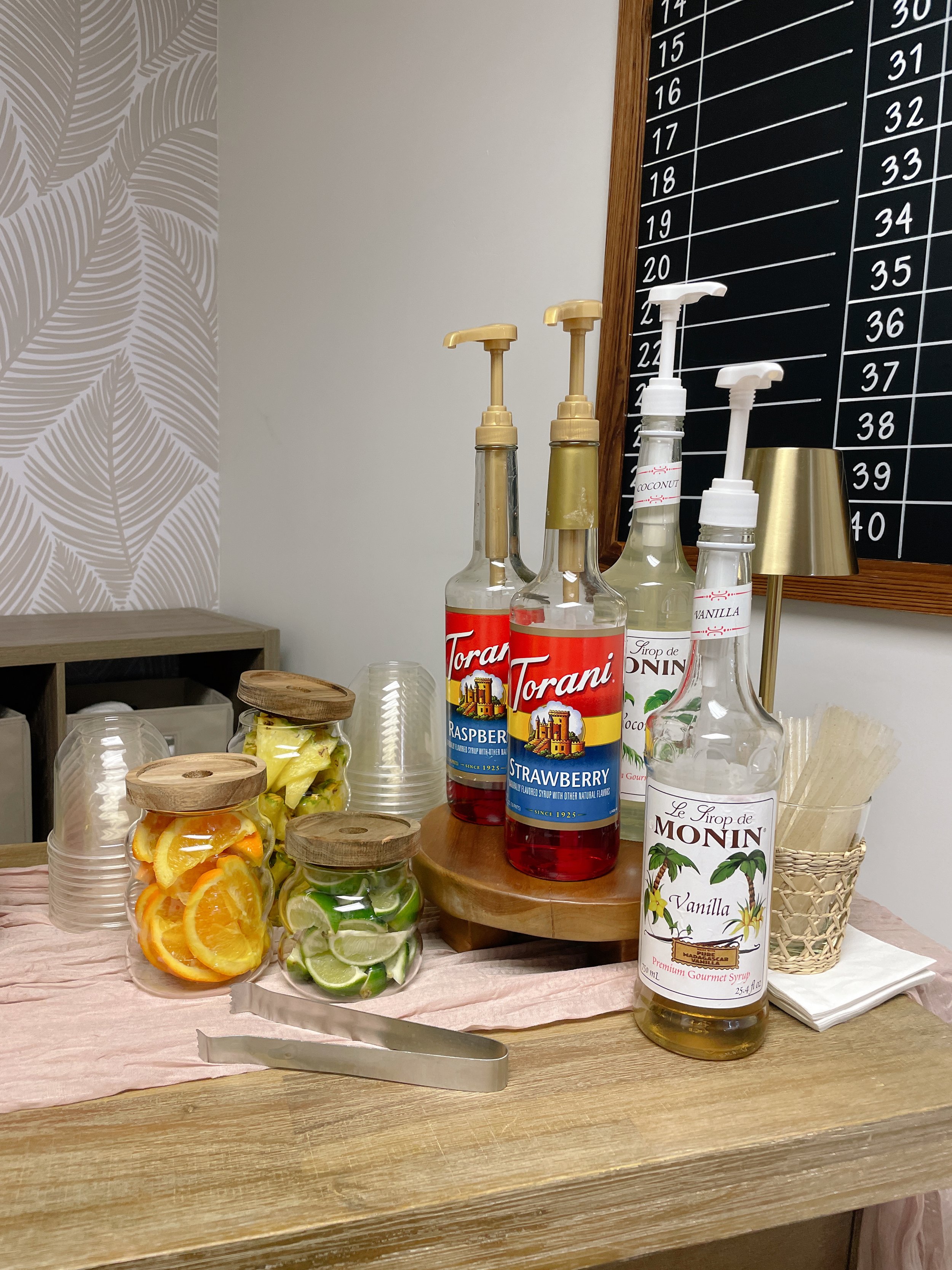 Beverage Service: 2 mixers, 2 basic garnishes, spring water station